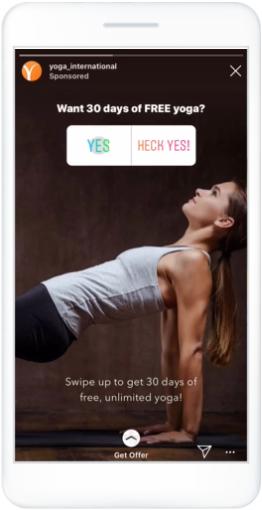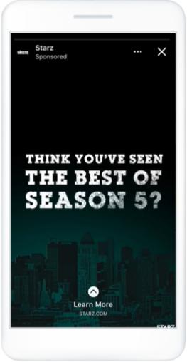 Instagramストーリーズは、縦型のフルスクリーンという非常に没入感のあるフォーマットです。Instagramストーリーズにおける広告はオーガニックストーリーズの間で5秒間、もしくはユーザーによってスワイプされるまで表示されます。 Facebookストーリーズとの連携も可能です。