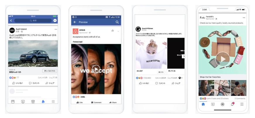 Facebook動画フィードは、Facebookニュースフィードにおいて動画再生が可能な配信面です。静止画ではなく動きや音声を加えた動画を使用することですばやくユーザーの注意を引き付け、商品の特徴や魅力を知ってもらうことができます。