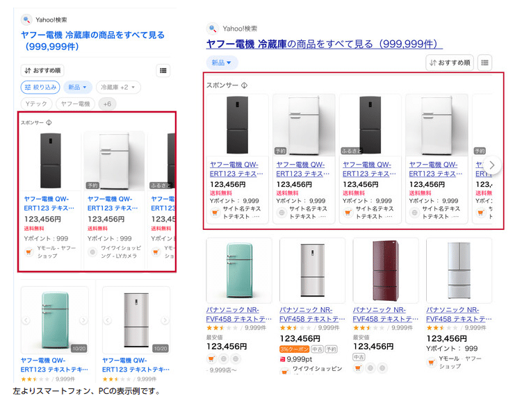 - 検索キーワードに該当する広告数が十分でない場合、表示形式が変更されることがあります