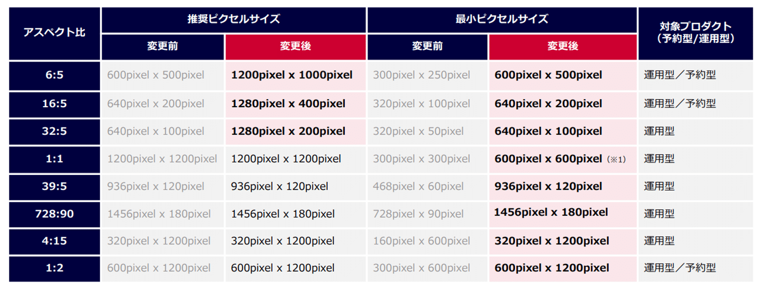 参照元:【ディスプレイ広告】一部画像の最小ピクセルサイズ引き上げと入稿停止について|LINEヤフー for Business