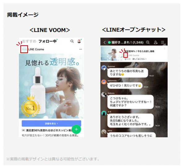 従来は「友だち追加」目的の広告に限定されていたLINE公式アカウントのプロフィール画像連携機能が、すべての広告で利用することが可能になりました。LINE公式アカウントのプロフィール画像が広告に表示されることにより、インターネットユーザーの認知性や安心感の向上が期待できます。
